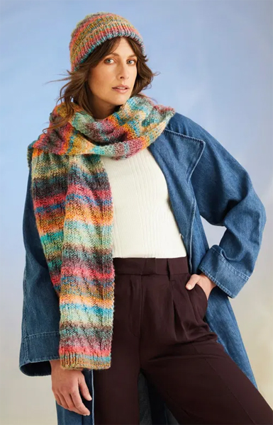 10710 Stickbeskrivnig till mössa och halsduk i Sirdar Jewelspun with wool chunky